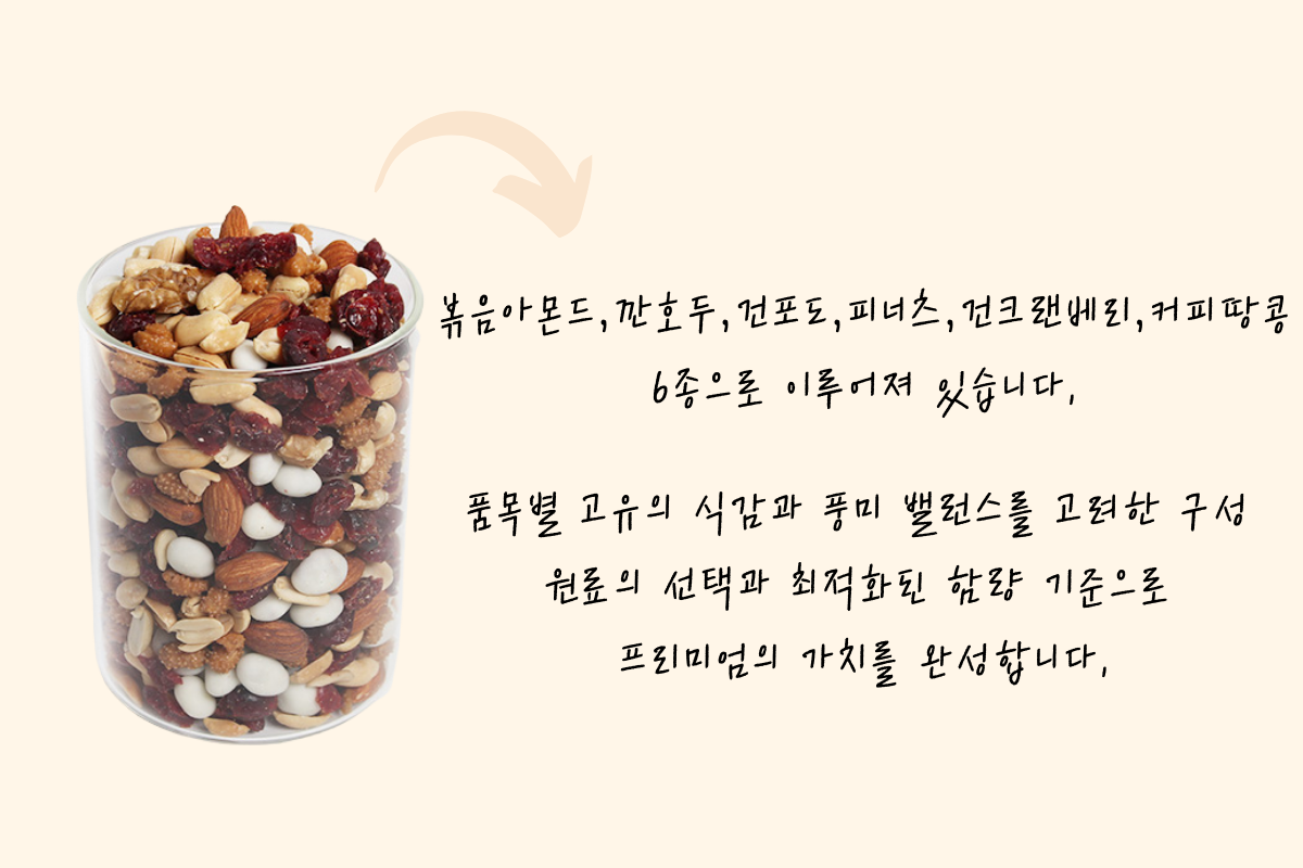 건강한 견과로 구성된 믹스넛의 고소함을 느껴보세요.